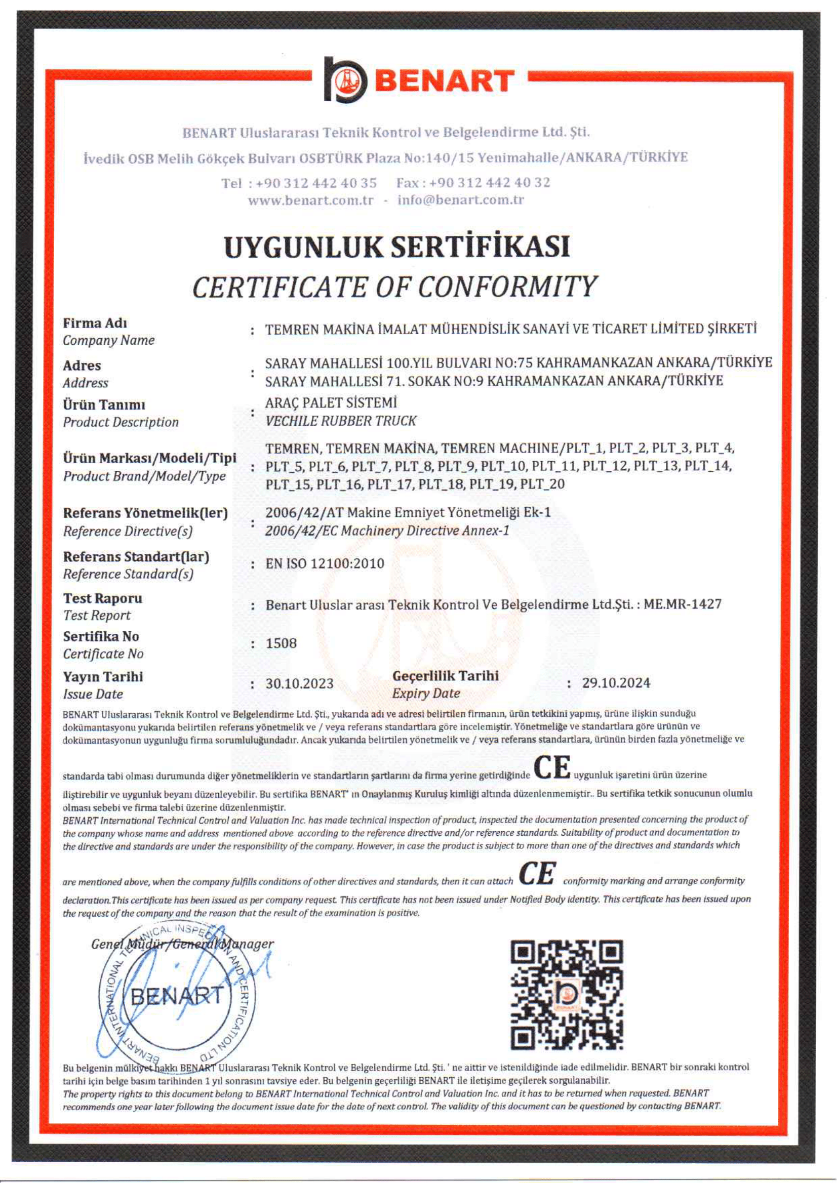 Araç Palet CE Belgesi
