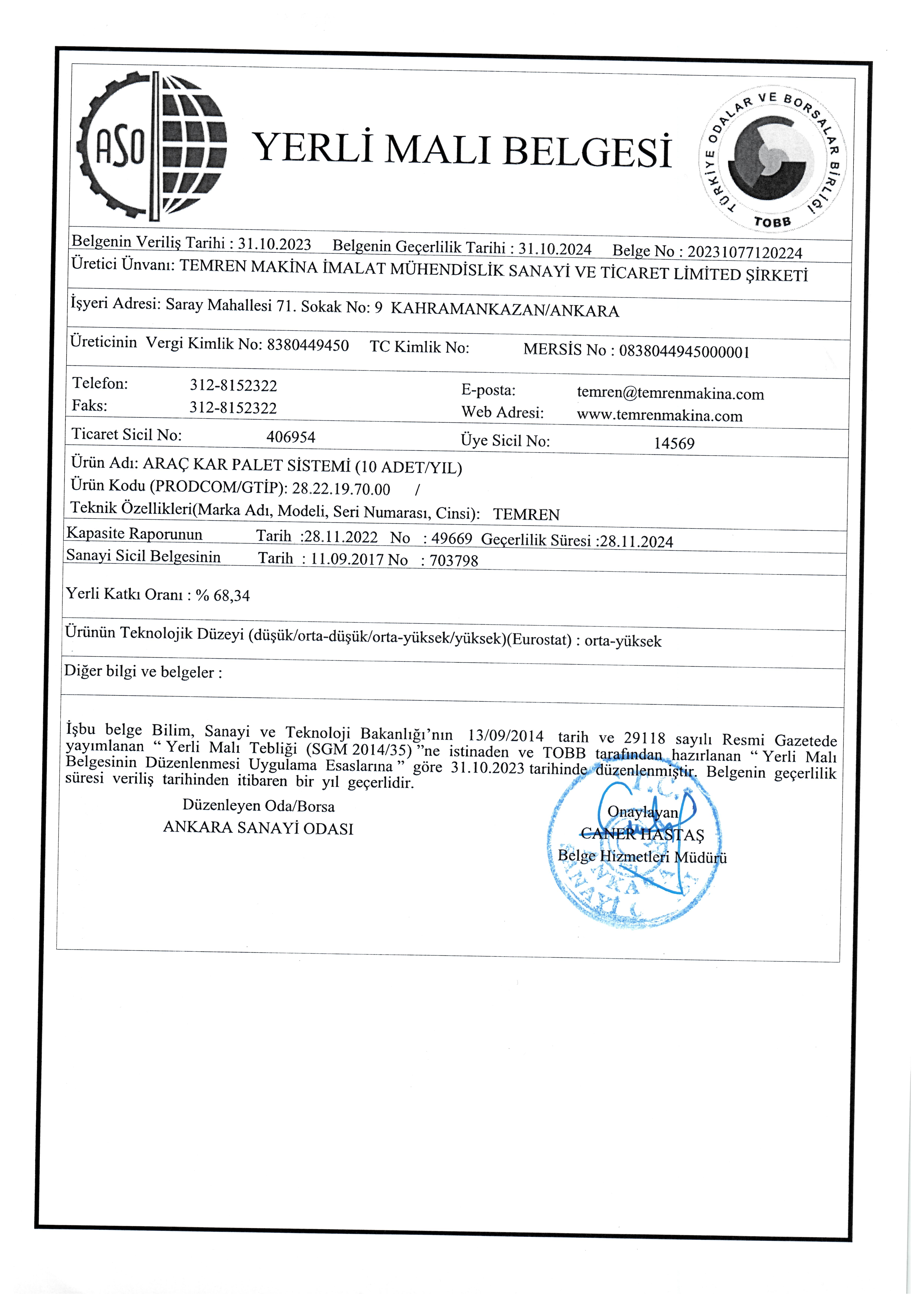Yerli Malı Belgesi